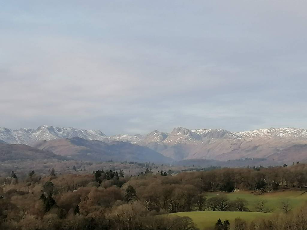 Leaving the tree tunnel behind, I start to climb again. As I pass Windermere School, I always look left and never fail to be struck with awe as the Langdales burst forth on the horizon.