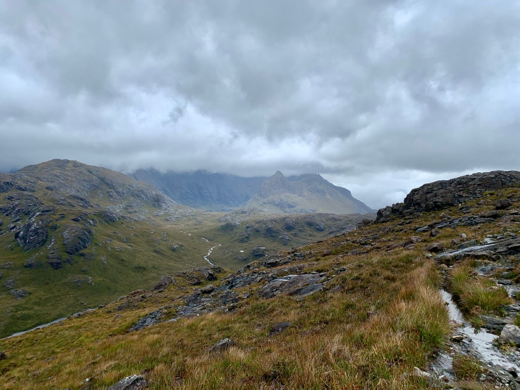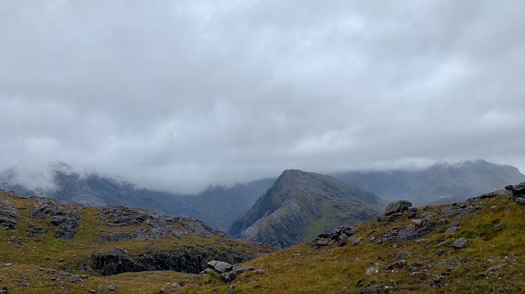 Drawing into the long layby at Kilmarie, along the long lonely road to Elgol, the rain had relented to a soft mizzle. ‘This isn’t so bad’, I said to myself, as I weighed up whether I’d need a jacket to start. I kept it in my bag, along with my waterproof trousers and a mountain of food.