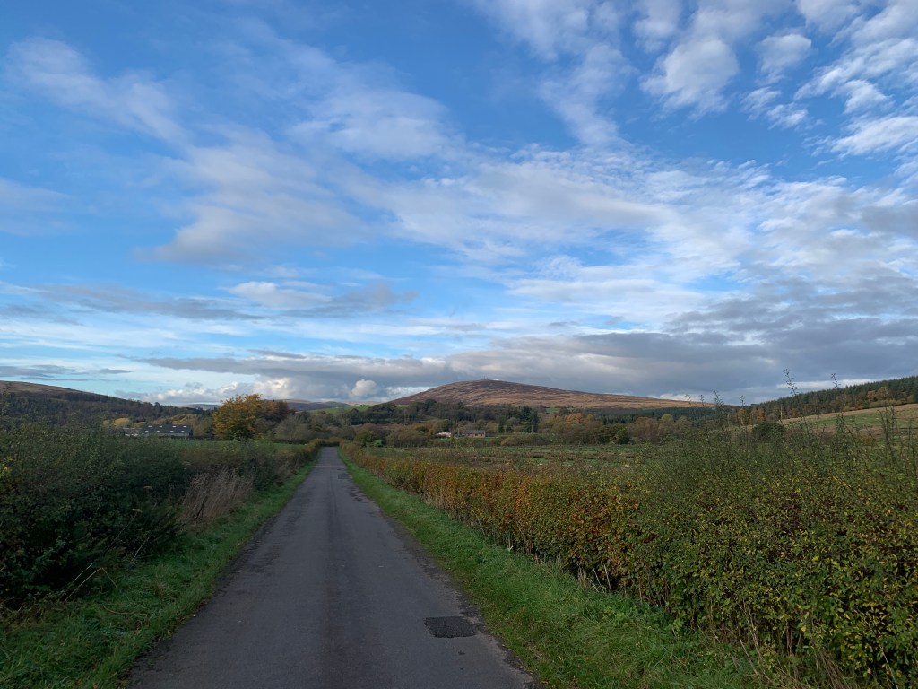 By now it was 9.30am and I had covered just over 30km, which wasn’t too bad considering the terrain. I was back on tarmac, skimming through the shallow glen to Roberton and then on to Hawick.