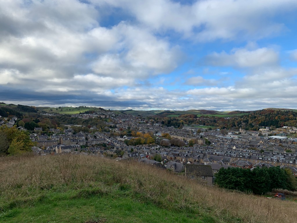 Once I heaved my elevenses, bike and myself up the hill, I got a cracking view over Hawick, which sits in a basin, nestled among the hills, with the River Teviot passing through it.