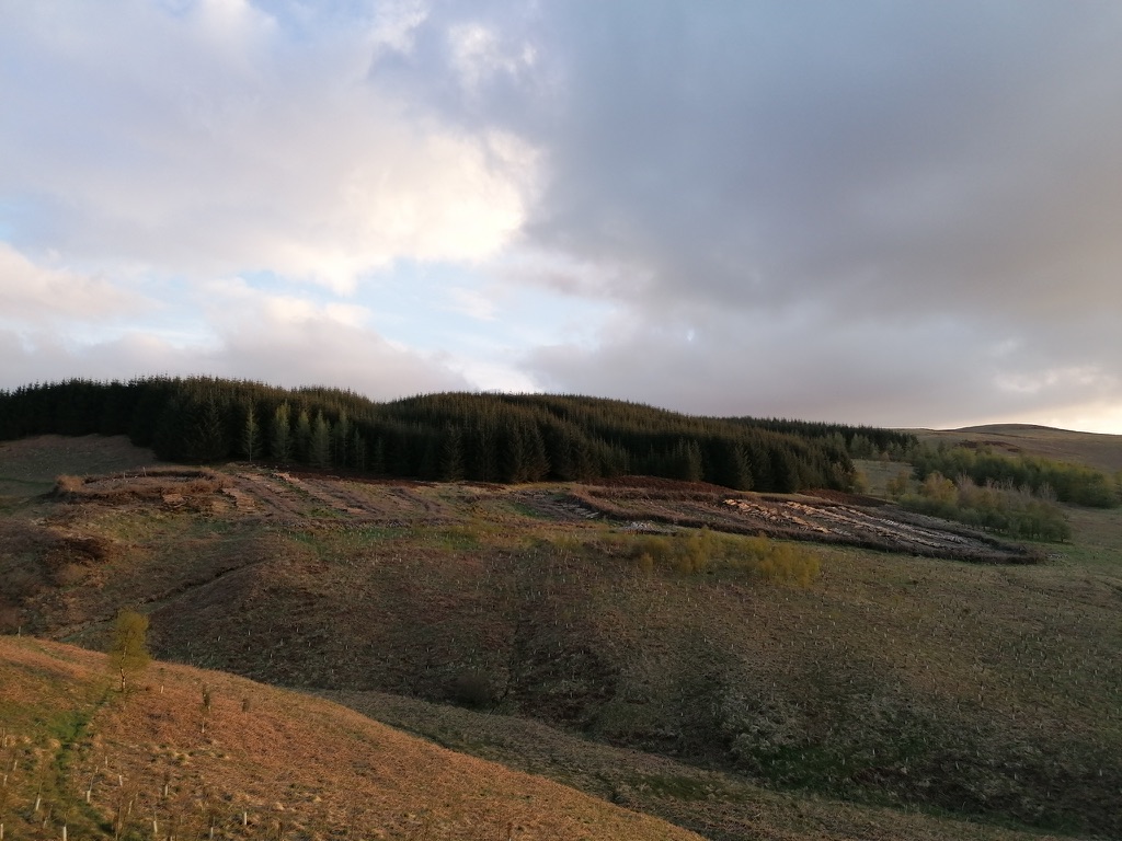 I stood over the juvenile forest, watching the early phases of a new generation of woodland begin. A symbol of what can be, along with all the biodiversity that will come with it. The whole forest will soon have all its larch removed, as the pervasive larch disease (Phytophthora ramorum) has spread through the wood.