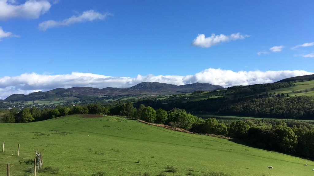 The road from Dunkeld is a wonderfully scenic one. With rows of woodlands on our left and fields on our right, the road snaked its way through Dalguise, where the looming figure of Ben Vrackie appeared ahead of us, towering above Pitlochry.