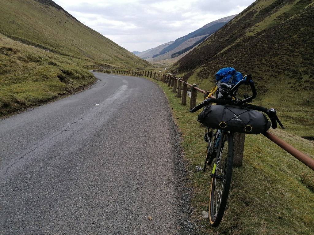 As the three of us chatted and ate, the weather finally came in. As anyone who rides bikes will know, getting your temperature back up after a cafe stop is hard enough without a drumming of rain. There was only so long we could hold off, though, so we swung our legs back over our bikes and pedalled along the road to enter the Sma’ Glen.