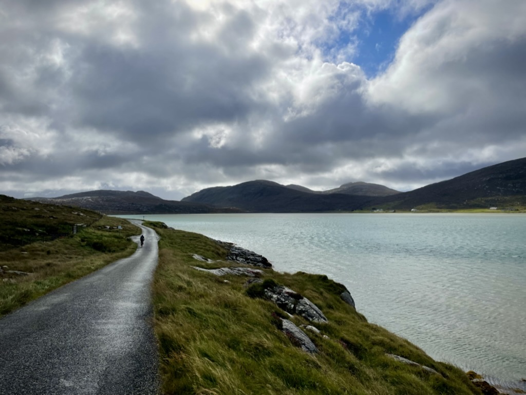 Once we eventually pulled ourselves away, we set course for Tarbert and the first of our Harris climbs. As we made our way over some steady gradients, the landscape unfurled ahead like a pop-up book, with mighty hills growing on the horizon. Harris contains no real ‘mountains’, but the meeting of land and sea makes these hills all the more striking.
