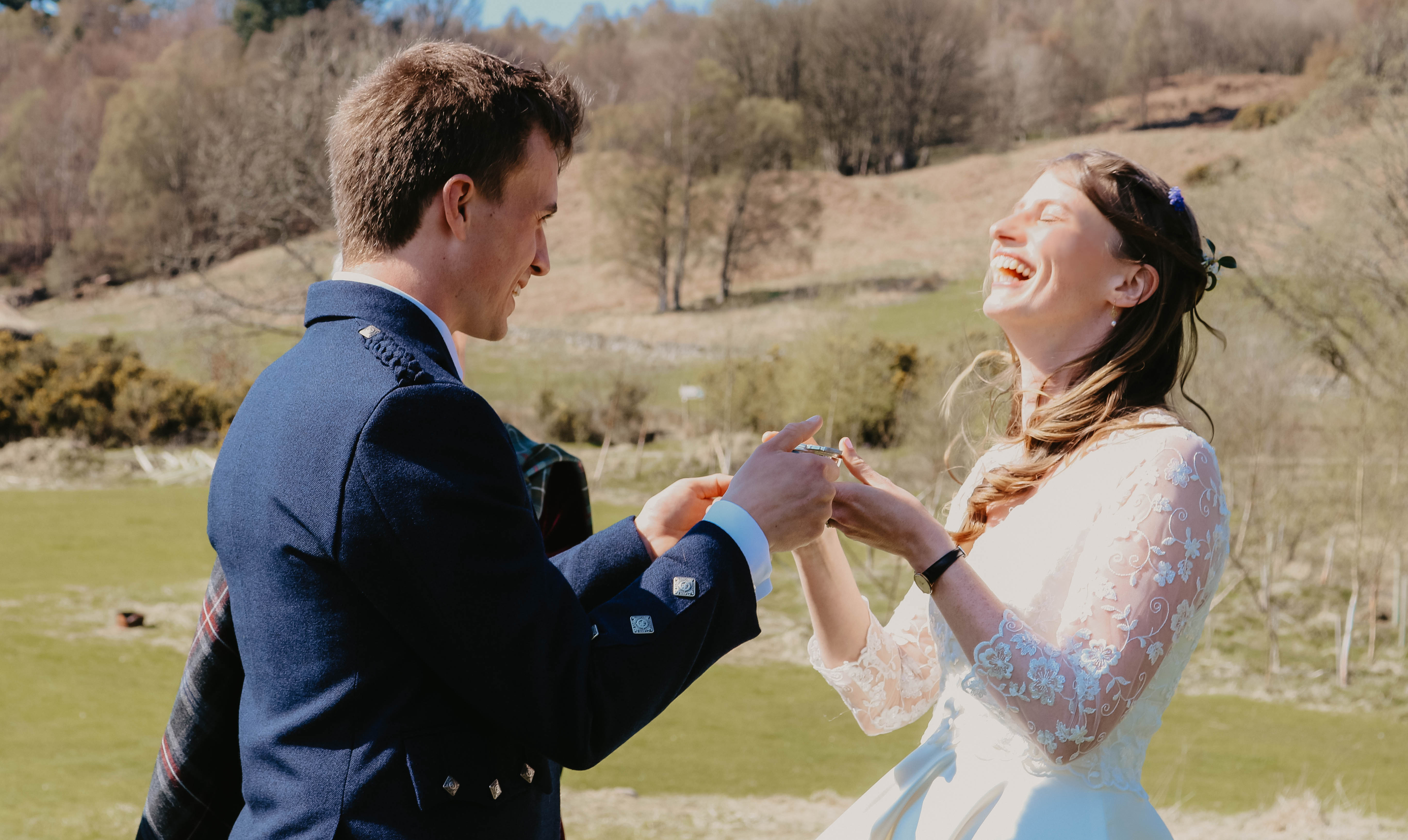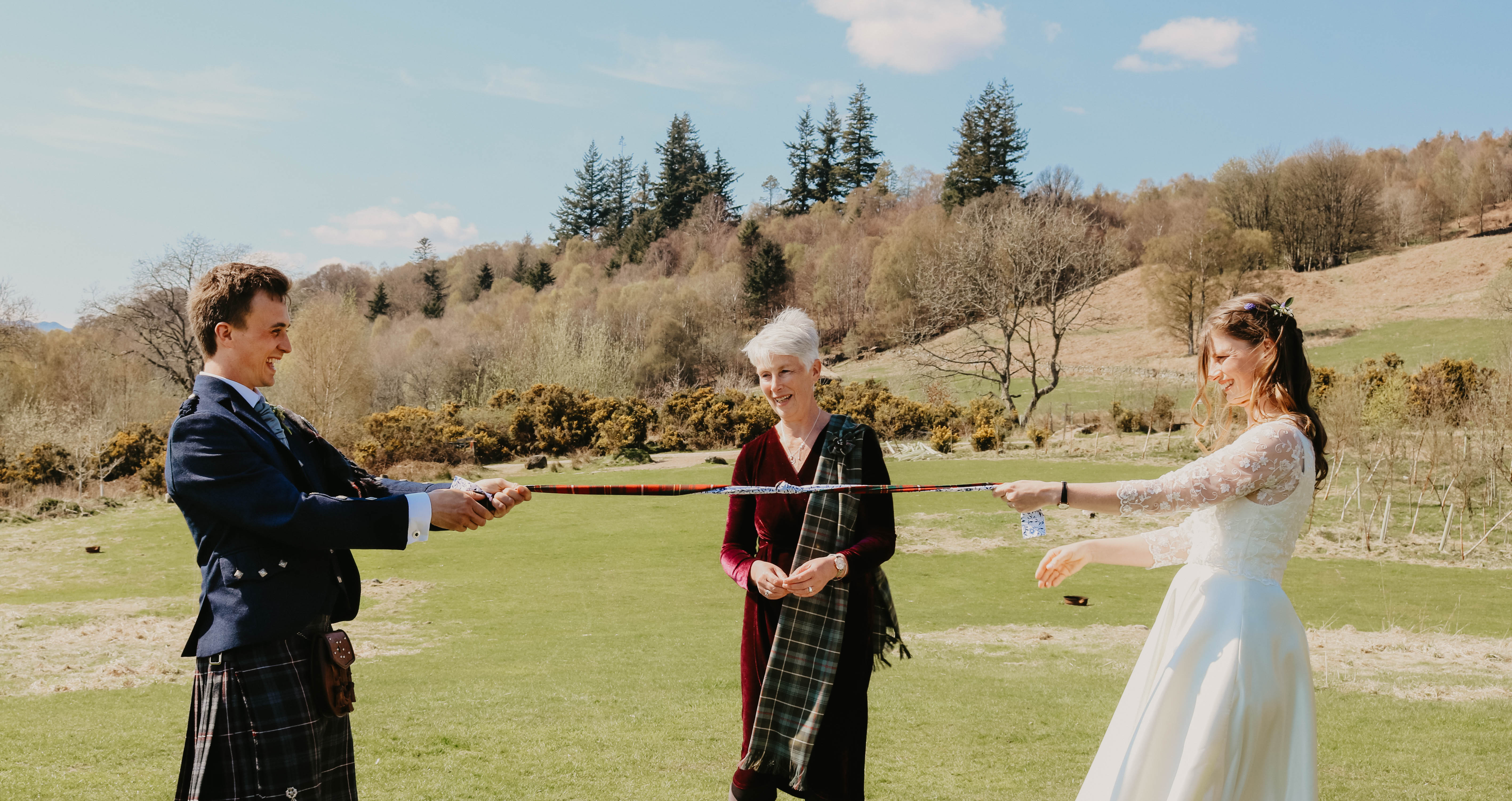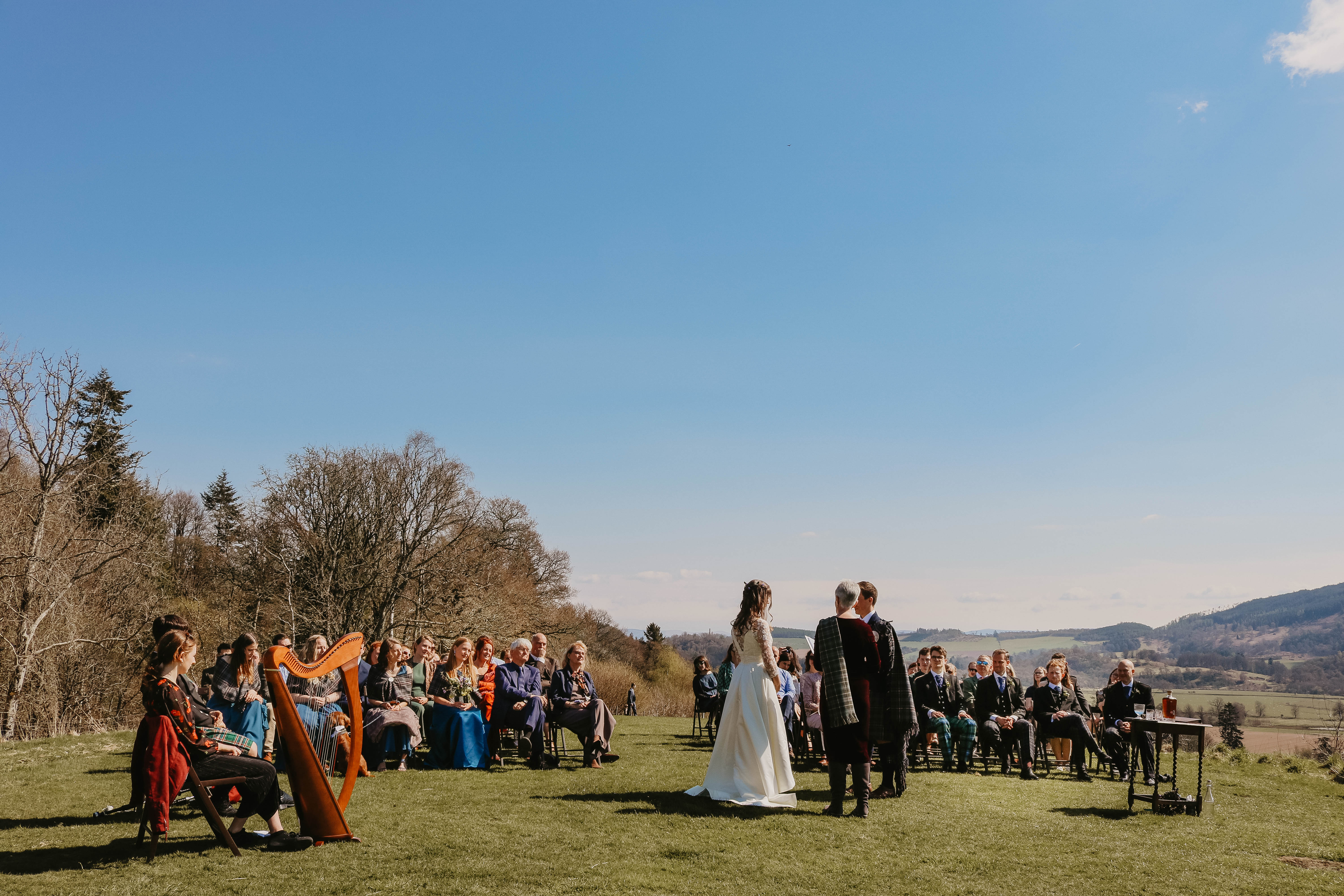 Gillian was everything I wanted in a celebrant: kind, patient, funny, and well-versed in some Scottish wedding traditions. We had both a hand-fasting and a quaich ceremony, both of which we added some special twists to. For the former, our mothers laid my family’s traditional tartan over our hands and a Delft blue fabric to represent Bo’s Dutch heritage. The whisky in the quaich was poured by my dad, the whisky for which was Glenturret – just a few miles down the road.