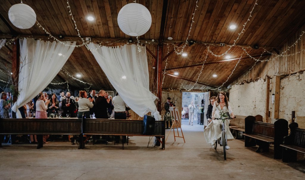 Sustainability and localness was really important for us, in as much as we could control and give energy to: we dried foraged petals for over a year in our loft, mostly from our own garden and any other flowers came from the market garden next to the venue; my mum amassed an incredible range of second-hand, upcycled and handmade decorations, and anything else was borrowed from the venue; our photographer was local, our caterer was from St Andrews (who, while being a hog roast, made so much BBQ jackfruit and were also well-priced and easy to work with that we accepted some guilt for the meat-orientation of the dinner); we only asked for very specific gifts and money towards our honeymoon to avoid needless waste (one of our friends even offset 10T of carbon for us, which while not perfect, it is something; Bo’s dress was even made from vintage fabrics!